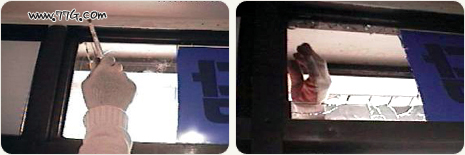 절단할 유리에 썬팅등이 있을경우는 썬팅을 파손할 부위만큼 제거한다.