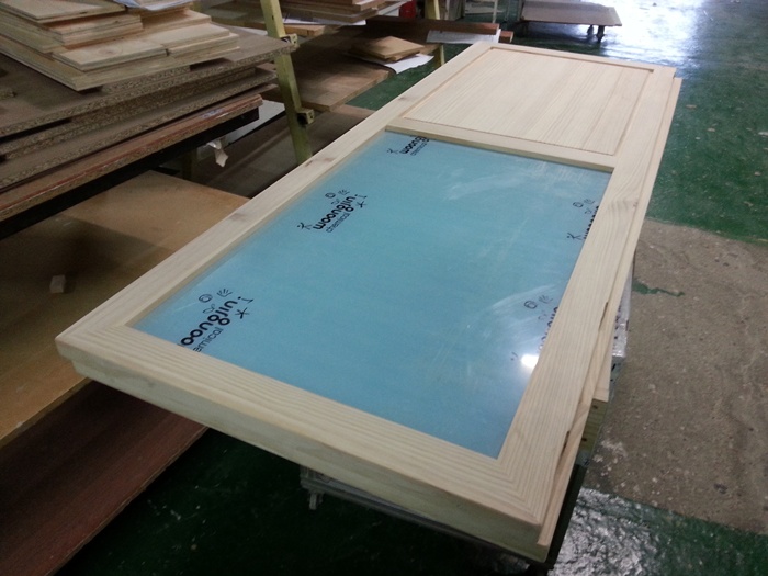 크로스 스윙도어 양쪽 여닫이 원목 중문(5mm 렉산)(소나무) (1442*2400*100)(1개) 507,160원
