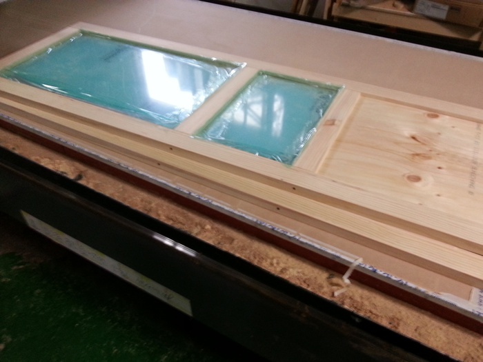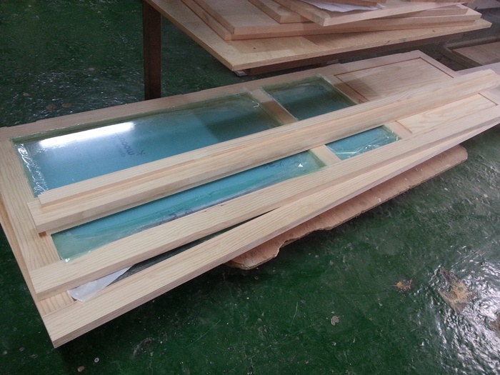 웨스턴 스윙도어 양쪽 여닫이 원목 중문(5mm 렉산)(소나무) (1210*2395*100)(1개)