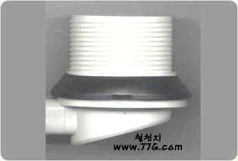 투수구 부속도 여러 가지가 있는데 물통 내부에서 관통을 하는 경우는 투수구를 아래의 모양대로 내부에서 끼워 둔다.