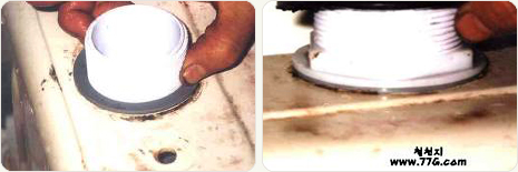 잘못하면 새부속으로 교체 해야 하는 수가 있으므로 주의 하자. 또 물통 내부에 끼운 고무가 꽉 압착이 되야만(내부 고무가 찌그러질 정도로..)