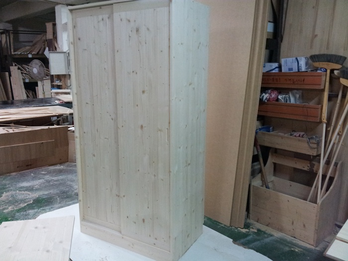 베이직 미닫이 원목 옷장 18mm(스프러스) (1000*2000*600)(조립 완제품)(1개)