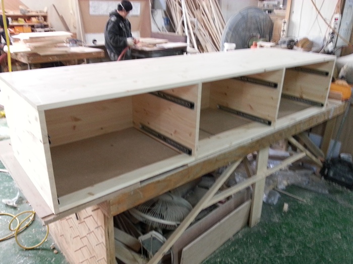 싱크대 ( 상부장2200 mm * 800 mm * 310 mm 하부장2200 mm * 700 mm * 570 mm)(스프러스문짝)(32 mm)(내부장 오크색) 1,041,180원