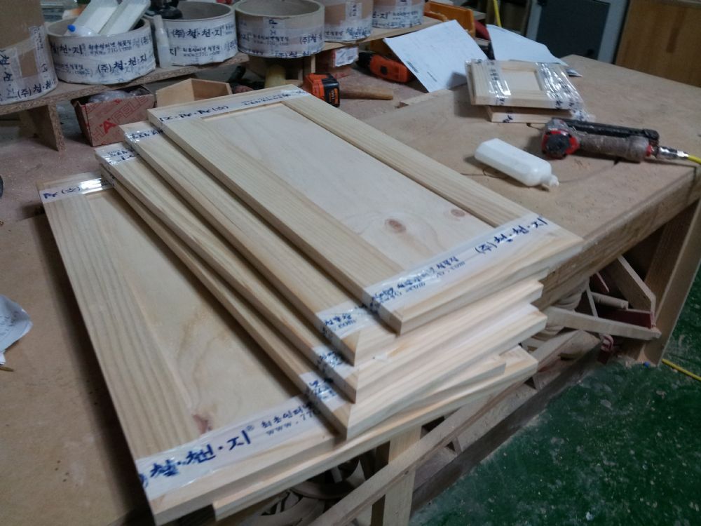 싱크대 ( 하부장2300 mm * 700 mm * 570 mm)(소나무문짝)(0 mm)(내부장 오크색) 632,320원