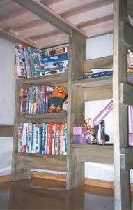 기둥을 책장으로 제작하여 수납을 용이하게함.