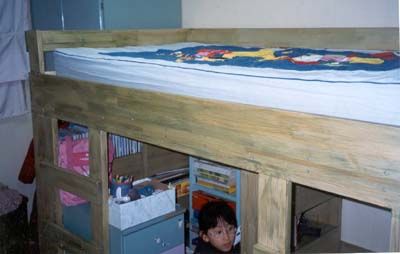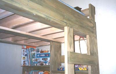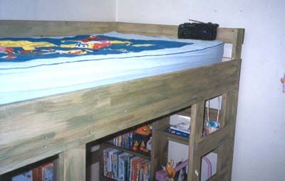 주로 집성목 30mm 와 18mm 로 구성 되어 있으며, 기둥부분과 힘받는 부분은 모두 30mm , 선반과, 침대 시트를 지탱하는 부분에는