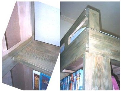 중간 기둥겸 책장및 상부 지지대와의 연결 모습