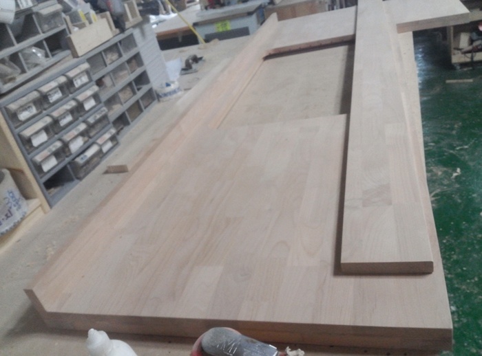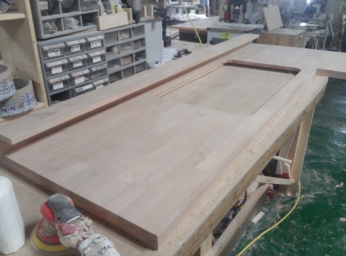 싱크대상판 원목(특수목) 36mm(뒷턱포함,싱크볼 별매)(1.볼규격 JS850)(오리나무) (2128*36*620)(1개)