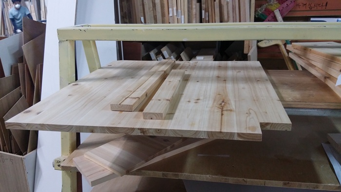 가구 제작 훈련을 받은 분들이라 총 14명이서 1200x500x300 크기의 공간박스 20개가