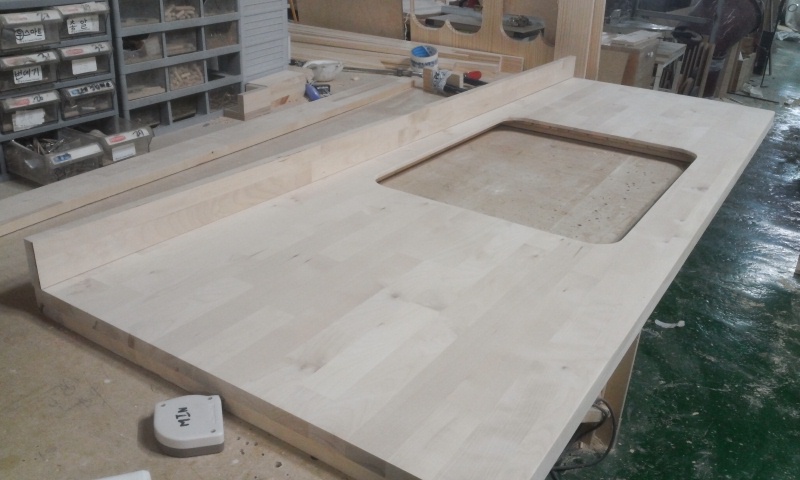 싱크대상판 원목(특수목) 36mm(뒷턱포함,싱크볼 별매)(샌딩포함)(4.볼규격 USS630)(자작나무) (1700*36*600)()(1개)