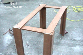 - 자투리 나무를 사용하여 상판 하부에 30~50 % 에 해당하는 지지대를 제작 한후 지지대 하부에서 나사못으로 고정