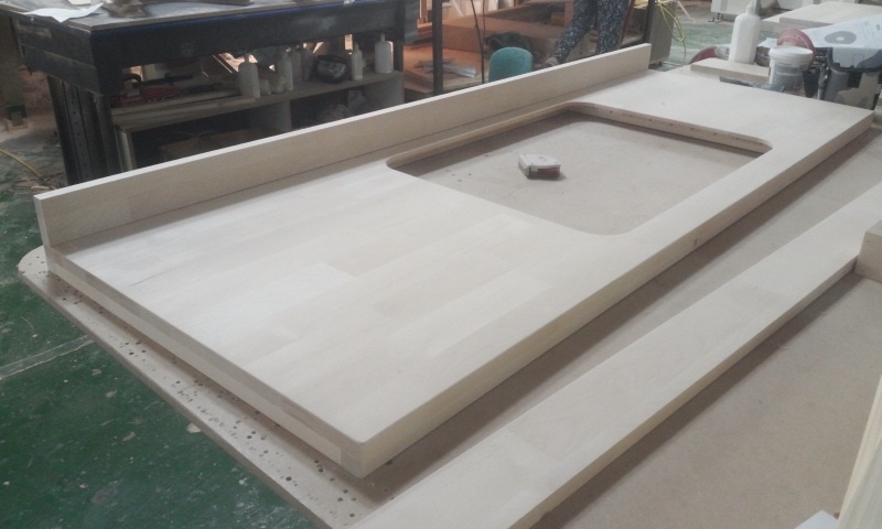 싱크대상판 원목(특수목) 36mm(뒷턱포함,싱크볼 별매)(1.볼규격 JS850)(자작나무) (2100*36*550)(샌딩)(1개)