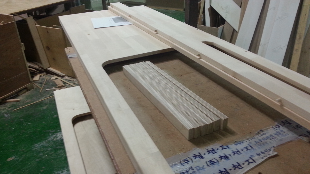 싱크대상판 원목(특수목) 36mm(뒷턱포함,싱크볼 별매)(1.볼규격 JS850)(자작합판) (2650*36*550)(샌딩)(1개)