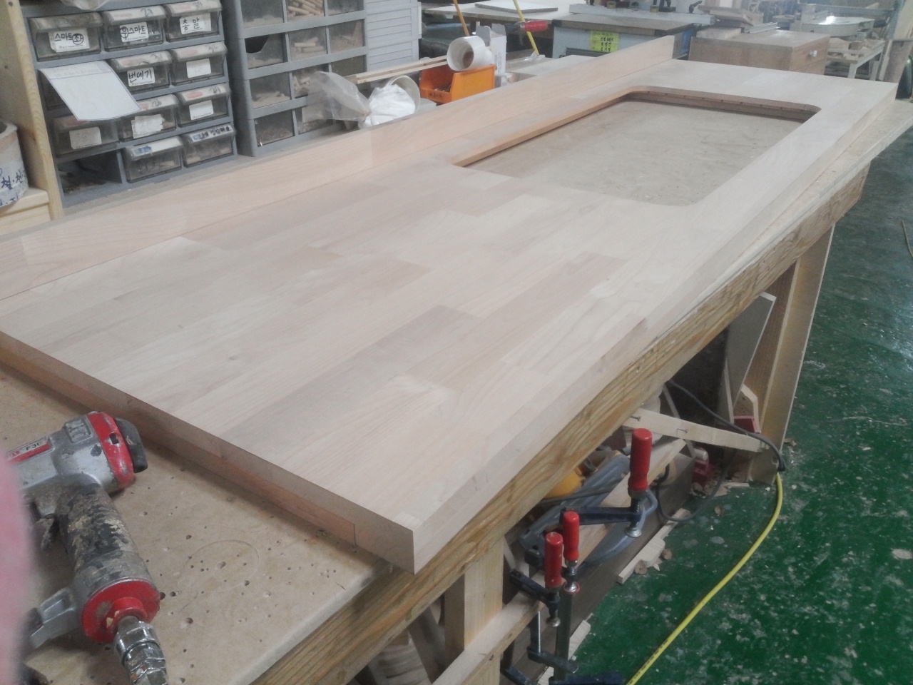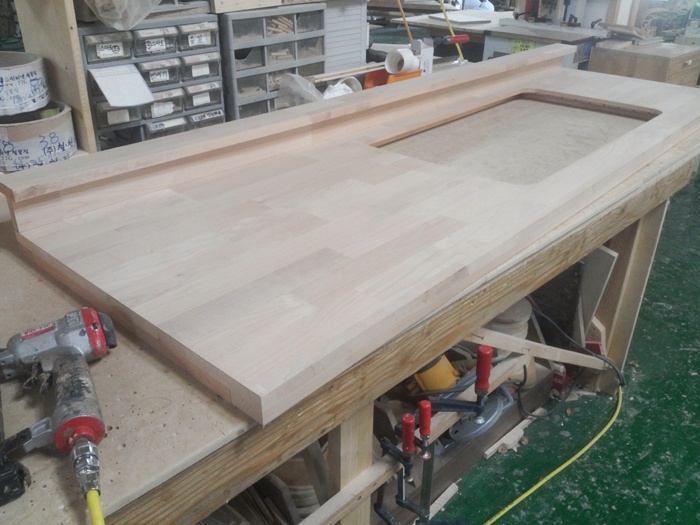 싱크대상판 원목(특수목) 36mm(뒷턱포함,싱크볼 별매)(1.볼규격 JS850)(오리나무) (1980*36*610)(샌딩)(1개)