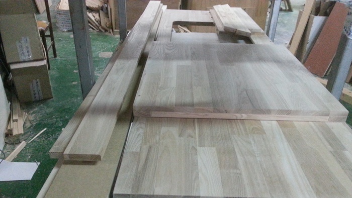 싱크대상판 원목(특수목) 36mm(뒷턱포함,싱크볼 별매)(1.볼규격 JS850)(물푸레) (2400*36*600)(1개)