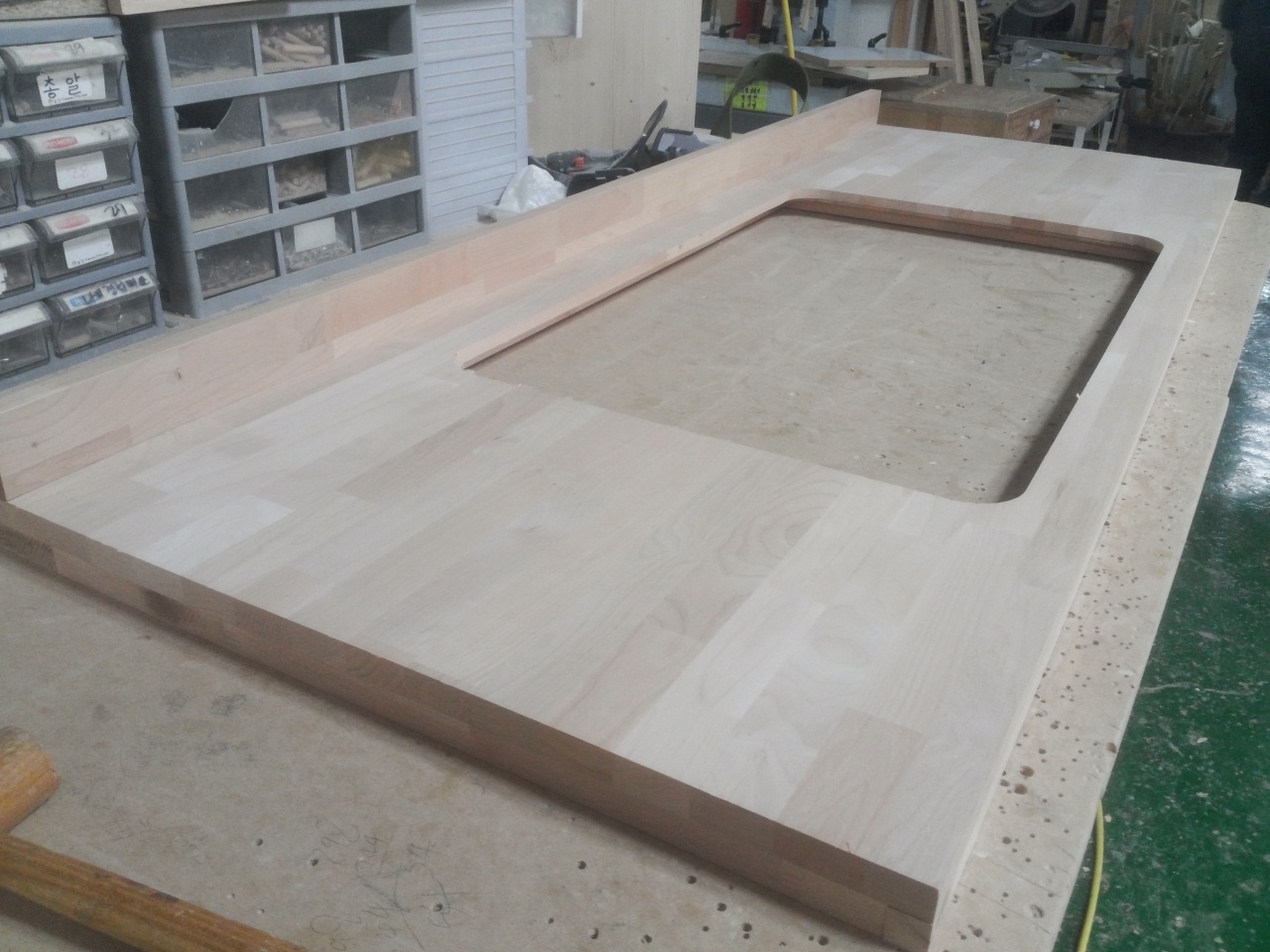 싱크대상판 원목(특수목) 36mm(뒷턱포함,싱크볼 별매)(5.기타볼(도면필수))(오리나무) (1200*36*550)(샌딩)(1개) 215,030원