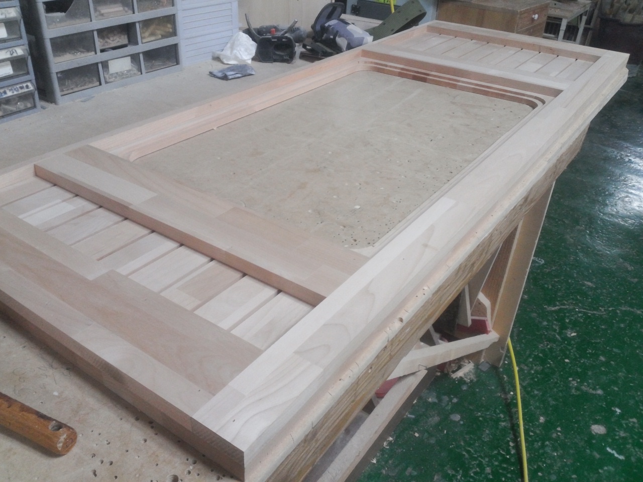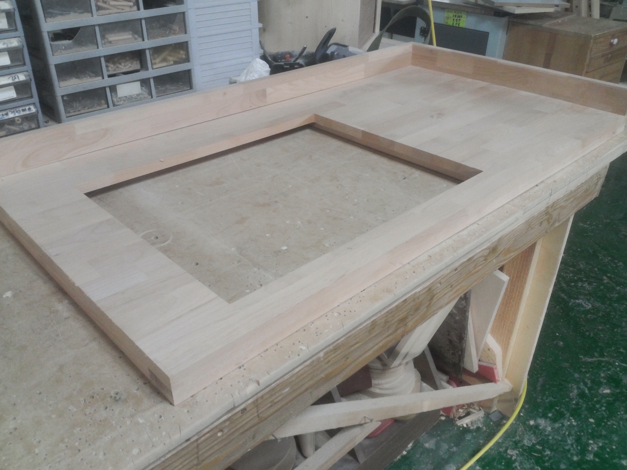 싱크대상판 원목(특수목) 36mm(뒷턱포함,싱크볼 별매)(5.기타볼(도면필수))(오리나무) (1200*36*550)(샌딩)(1개)