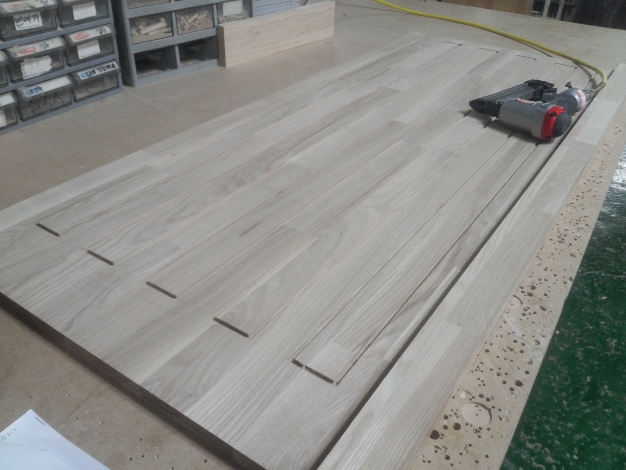 싱크대상판 원목(특수목) 36mm(뒷턱포함,싱크볼 별매)(1.볼규격 js850)(물푸레) (2810*36*600)(샌딩)(1개) 371,550원