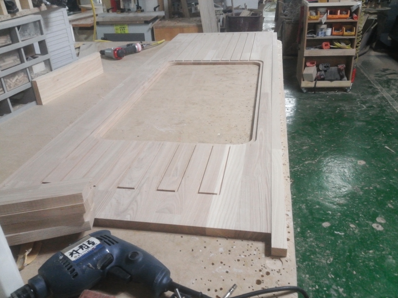 싱크대상판 원목(특수목) 36mm(뒷턱포함,싱크볼 별매)(1.볼규격 JS850)(물푸레) (2810*36*600)(샌딩)(1개)
