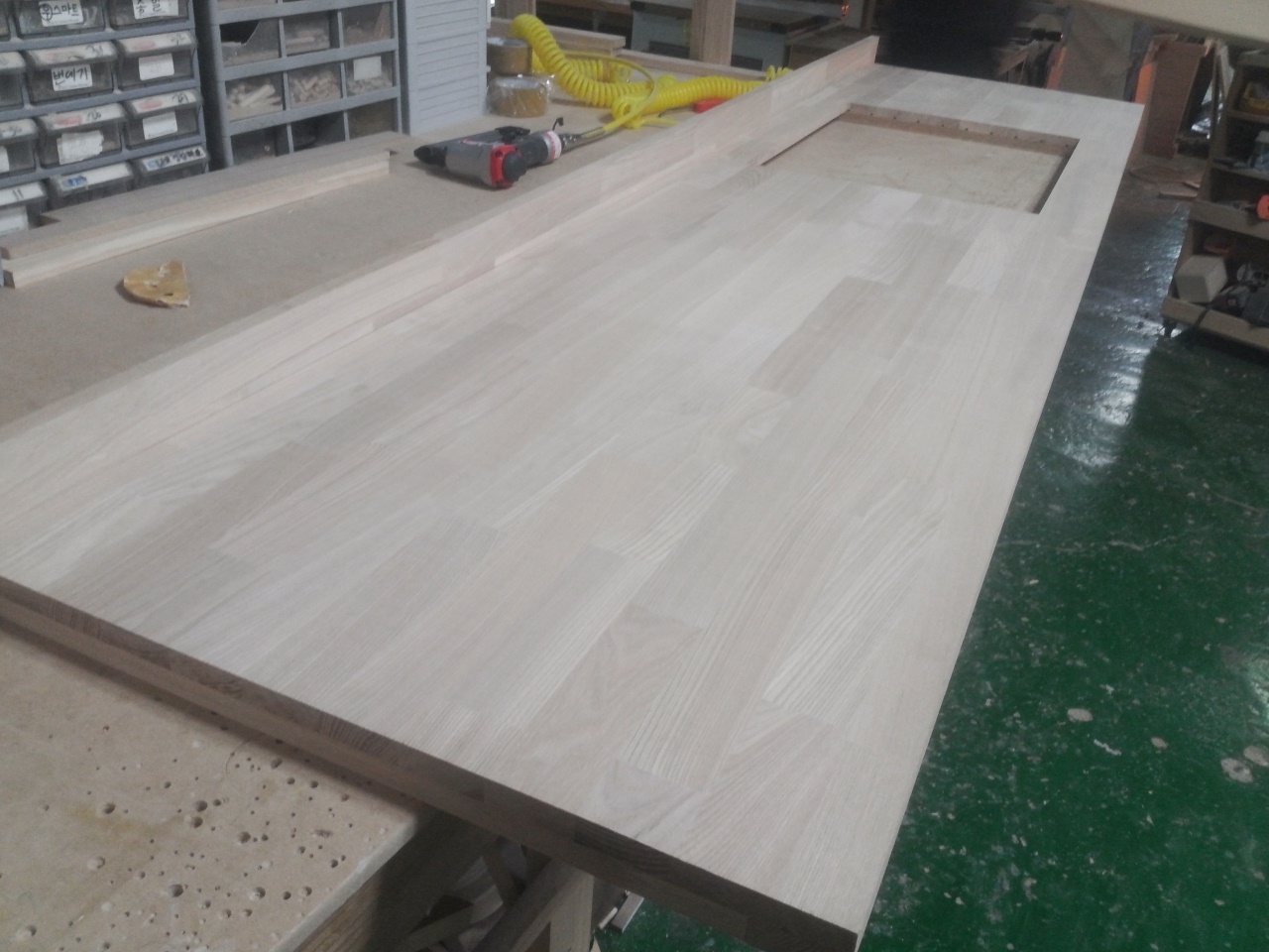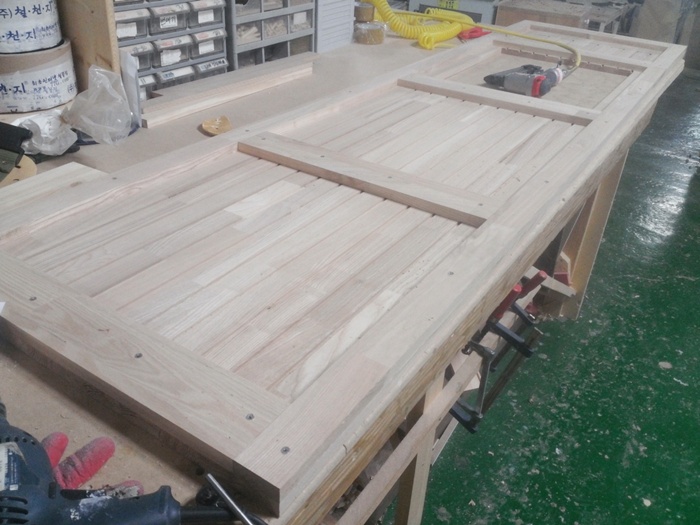 싱크대상판 원목(특수목) 36mm(뒷턱포함,싱크볼 별매)(1.볼규격 JS850)(물푸레) (2400*36*600)(1개) 287,480원