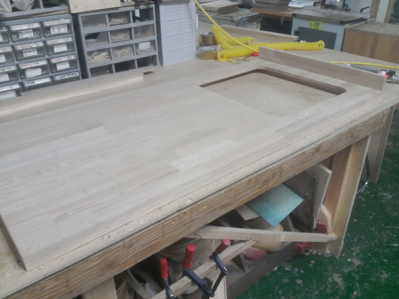 싱크대상판 원목(특수목) 36mm(뒷턱포함,싱크볼 별매)(1.볼규격 JS850)(물푸레) (1300*36*600)(1개) 178,630원
