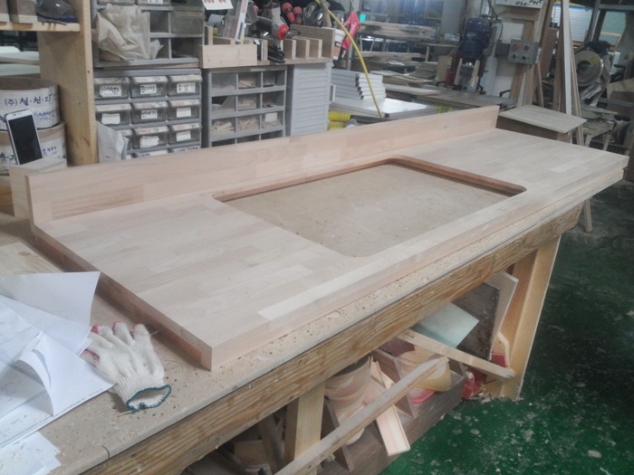 싱크대상판 원목(특수목) 36mm(뒷턱포함,싱크볼 별매)(1.볼규격 JS850)(오리나무) (1560*36*600)(1개) 194,760원