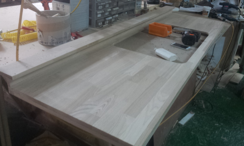 싱크대상판 원목(특수목) 36mm(뒷턱포함,싱크볼 별매)(5.기타볼(도면필수))(물푸레) (2905*36*600)(샌딩)(1개)