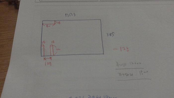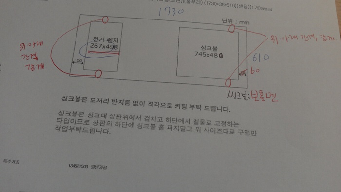 원목(특수목) 싱크대상판 쿡탑(가스렌지) 가공비용 20,000원