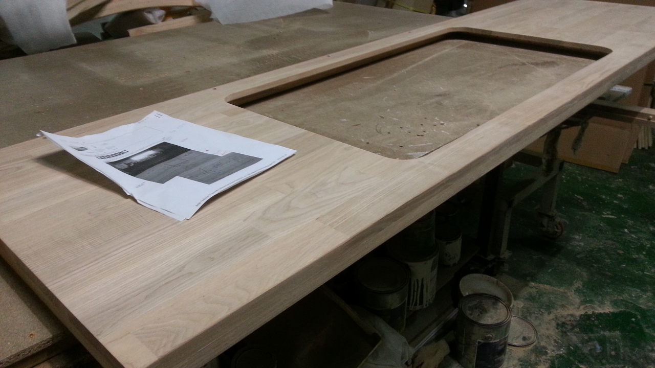 싱크대상판 원목(특수목) 36mm(뒷턱포함,싱크볼 별매)(볼 JS870)(물푸레) (1430*36*650)(샌딩)(1개) 224,600원