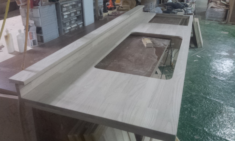싱크대상판 원목(특수목) 36mm(뒷턱포함,싱크볼 별매)(볼 JS850)(물푸레) (1600*36*550)(1개) 194,000원