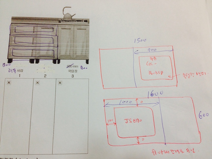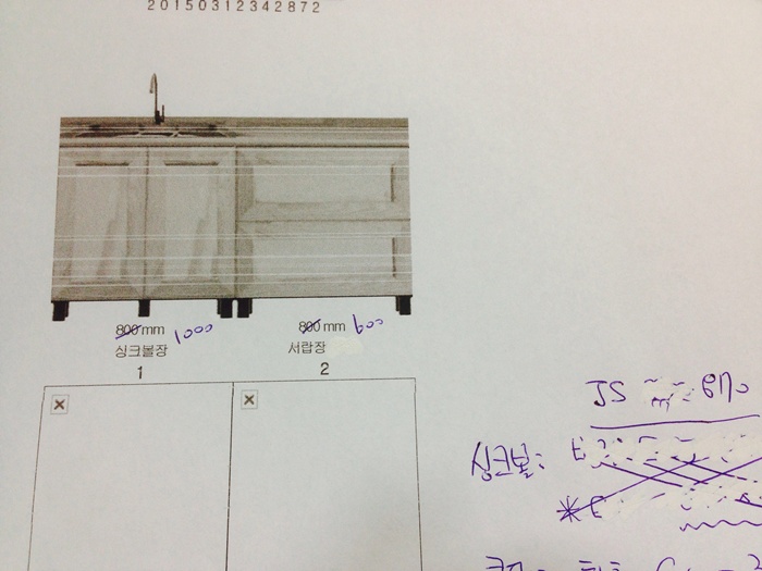 싱크대 ( 하부장1500 mm * 700 mm * 570 mm)(물푸레문짝)(64mm)(내부장 오크색) 442,270원