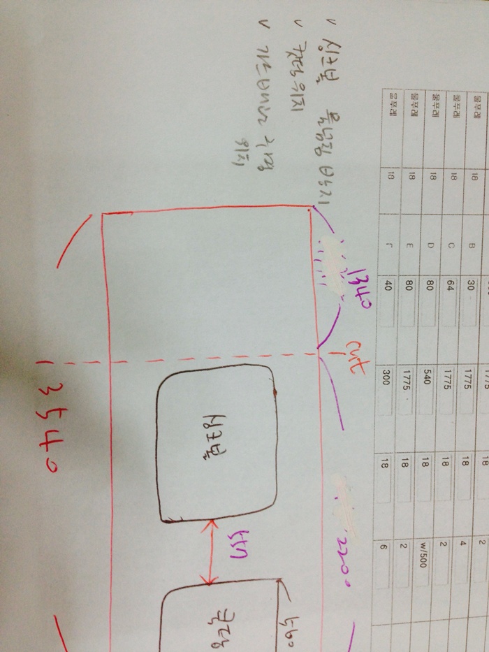 싱크대상판 원목(특수목) 36mm(뒷턱포함,싱크볼 별매)(기타볼(도면))(물푸레) (3550*36*600)(샌딩)(1개) 379,700원
