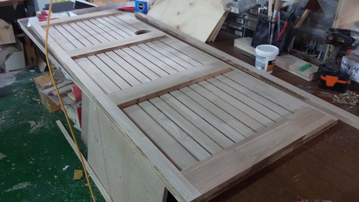 시즈닝 주방수납장 트윈 18mm(소나무) (900*1050*450)(샌딩)(1개) 256,570원