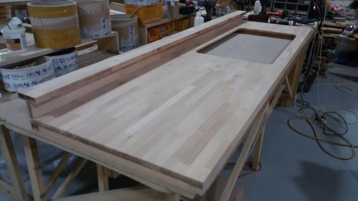 싱크대상판 원목(특수목) 36mm(뒷턱포함,싱크볼 별매)(볼 JS870)(오리나무) (2100*36*600)(샌딩)(1개) 287,280원