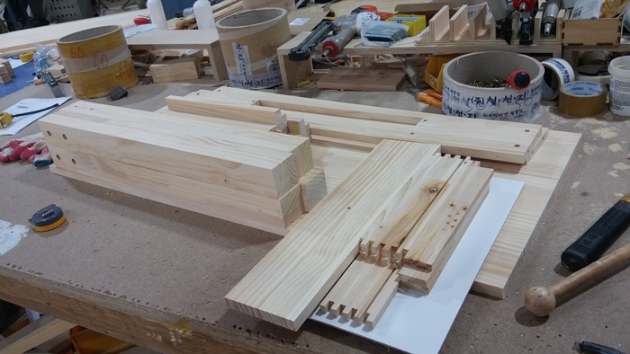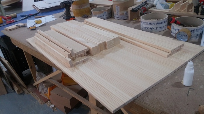 각재와 파이프를 정리할 암랙을 제작중에 있습니다.