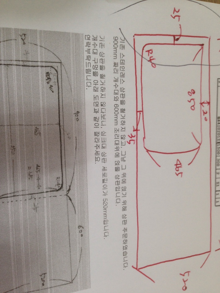 원목(특수목) 싱크대상판 쿡탑(가스렌지) 가공비용 20,000원