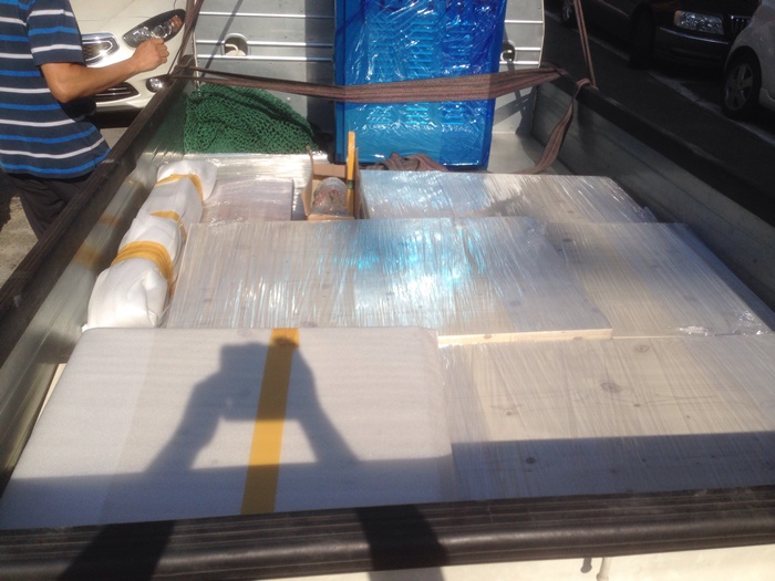 오전에 내린 비로 적재해둔 목재를 빼는데 어려움이 있었지만,