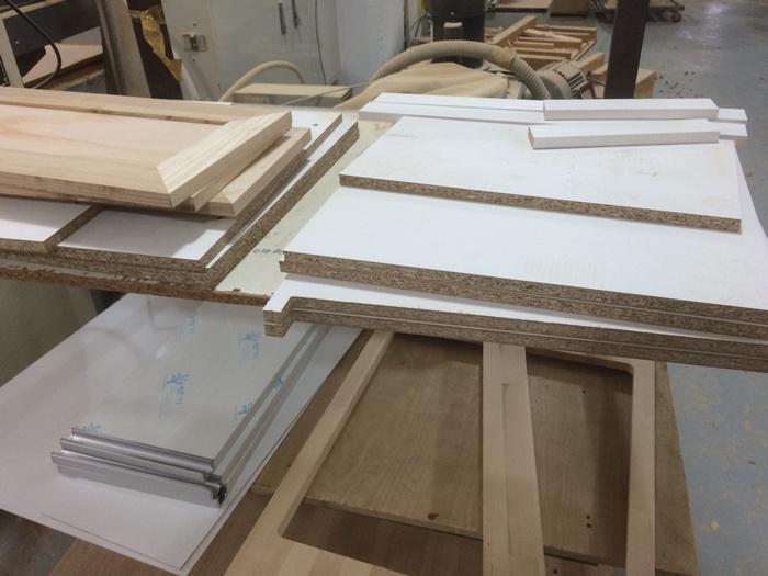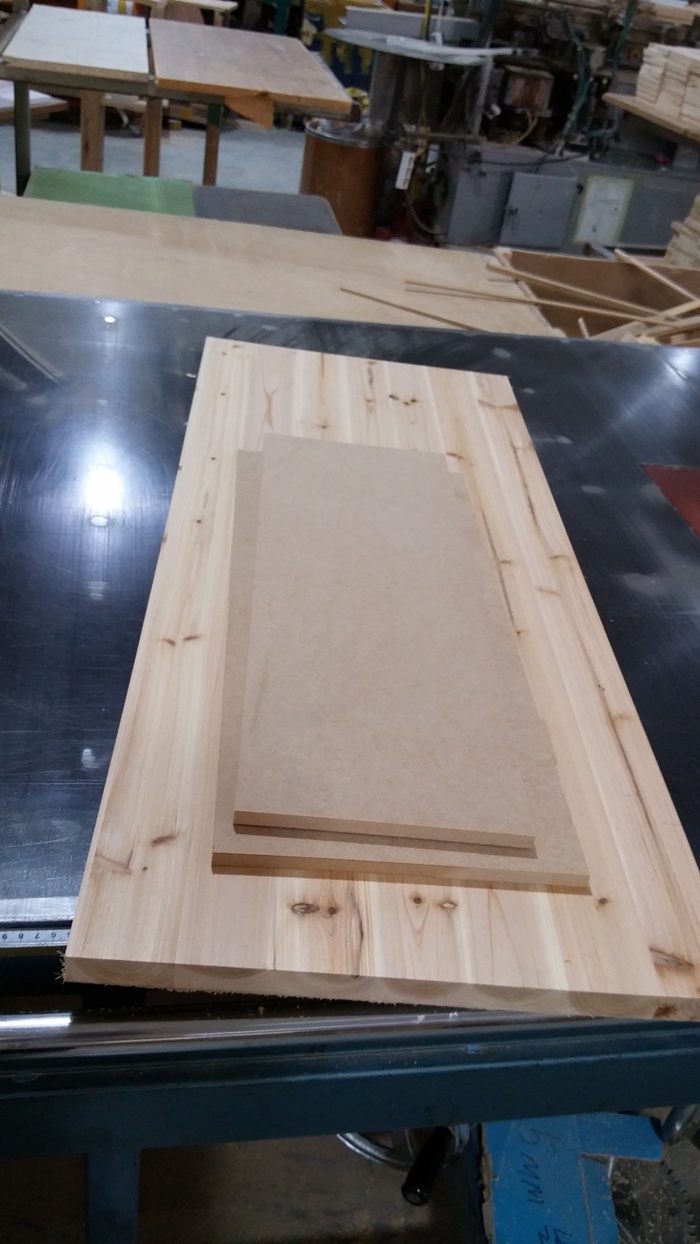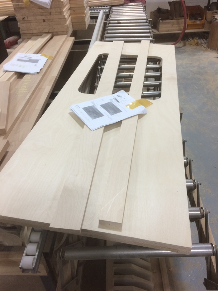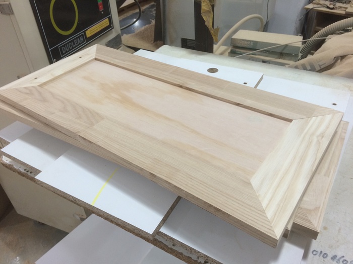싱크대문짝,265*635*1장,외(애쉬(물푸레) side Finger 18mm),내(미송 무옹이판 4.8mm),손잡이(중앙 좌 32mm),경첩가공(세로)