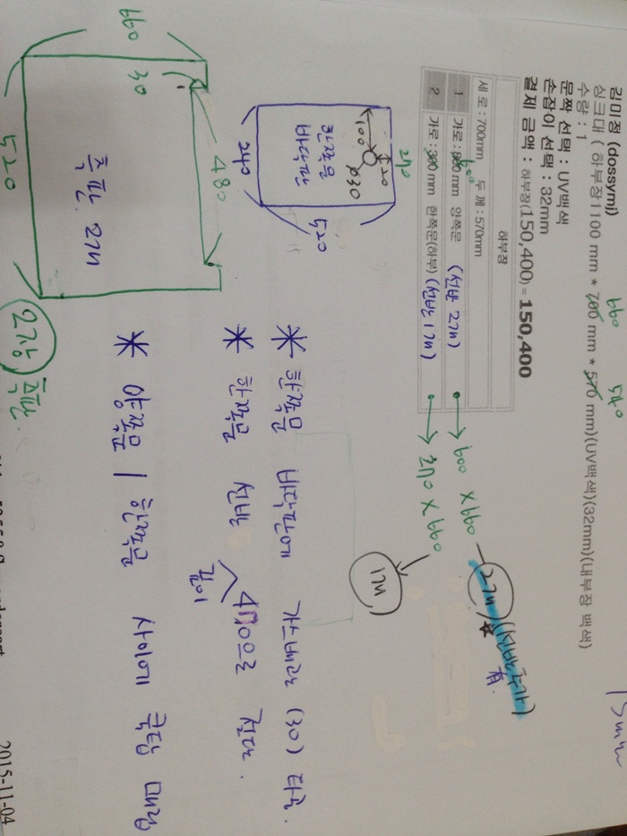 싱크대 ( 하부장1100 mm * 700 mm * 570 mm)(UV백색)(32mm)(내부장 백색) 150,400원