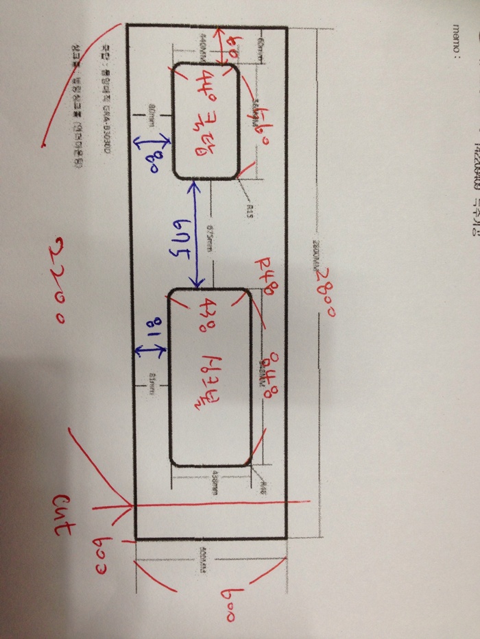 싱크대상판 원목(특수목) 36mm(뒷턱포함,싱크볼 별매)(기타볼(도면))(자작나무) (2800*36*600)(1개) 289,100원
