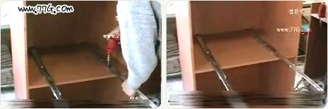 장깊이보다 50mm짧은 3단 레일을 수평으로 고정시킵니다.