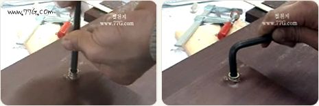 상판과 다리기둥을 돌려서 고정합니다.