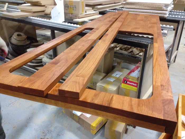 포장을 뜯는 순간 마주보게될 하드우드 싱크대상판입니다.