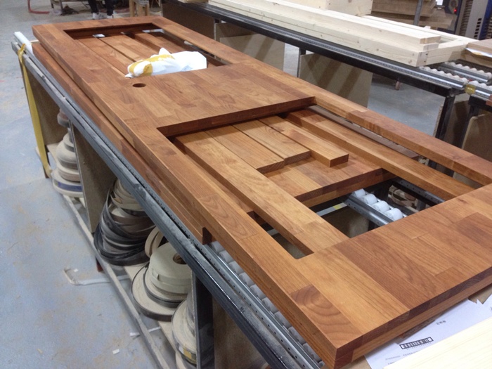 싱크대문짝,348*976*1장,외(칠레파인(뉴질랜드소나무) Solid 18mm),내(오크색(일반1면) 6mm),손잡이(무 0mm),경첩가공(세로)