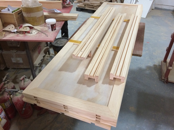 시즈닝 원목 미닫이문 (문틀폭 64mm, 3칸 나눔)(소나무) (2360*2205*100) 408,480원