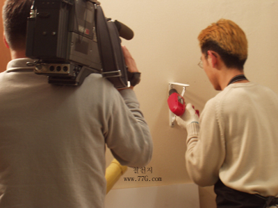 설명후 벽에 칼블럭을 고정용 홈을 파고요...