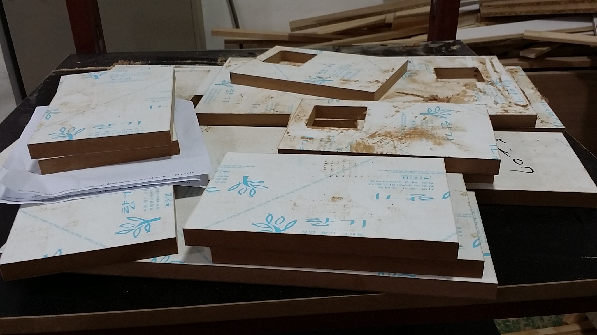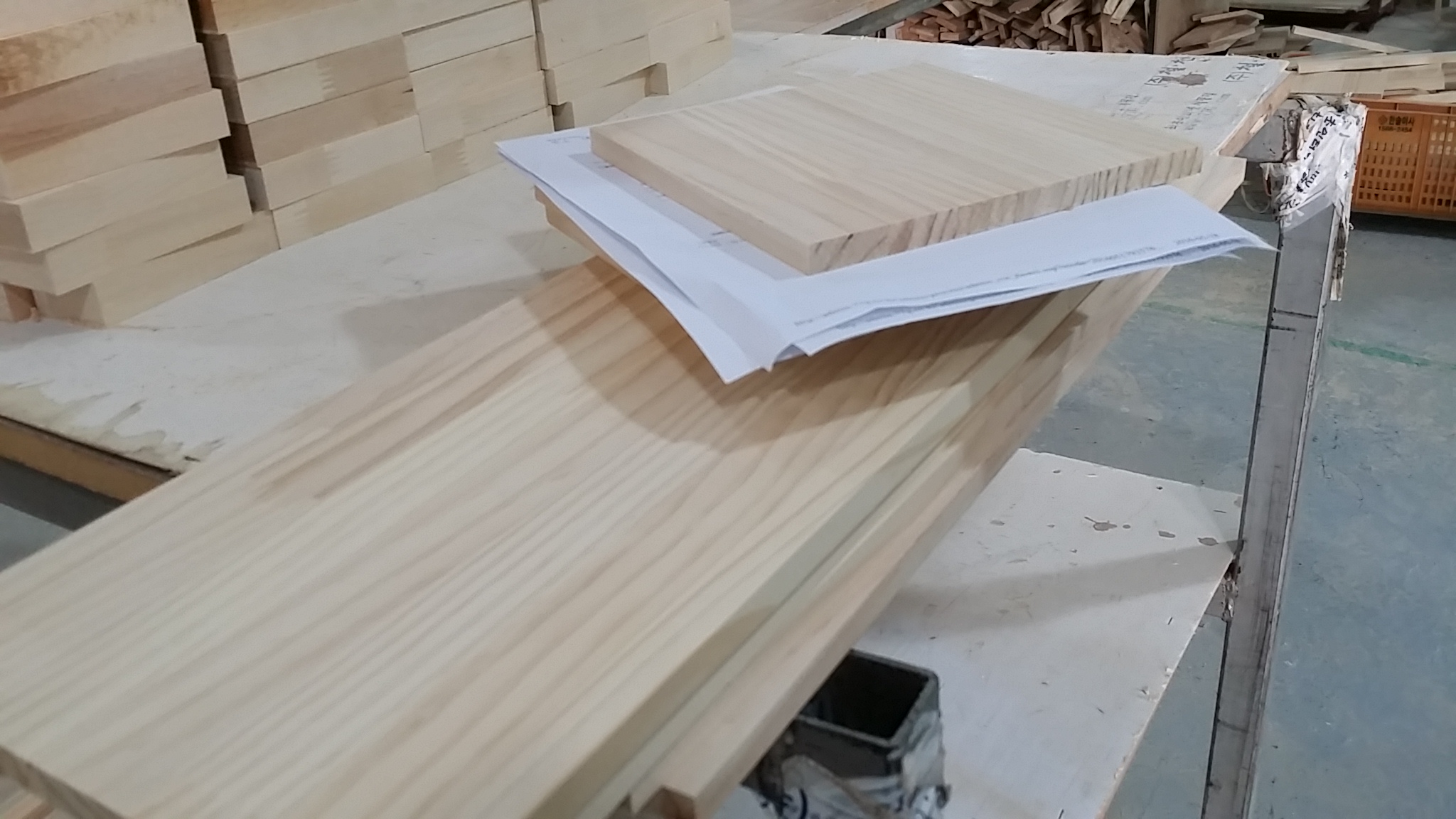 어제 만들어둔 원목 상판과 문짝에 오일 코팅 작업을 했습니다.