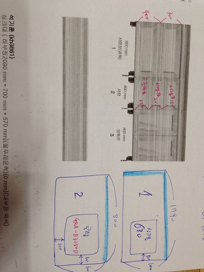 싱크대 ( 하부장2090 mm * 700 mm * 570 mm)(물푸레문짝)(0 mm)(내부장 백색) 694,840원