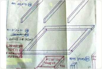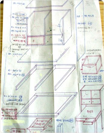 아래와 같이 준비된 도면에 따라서 6시간 가량 작업을 하면서 서랍레일을 3단 레일로