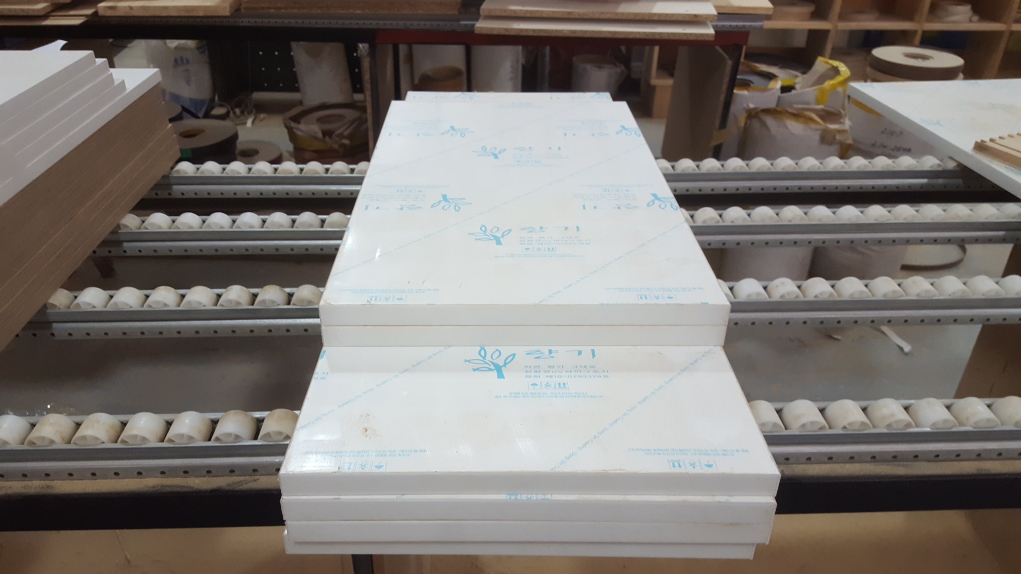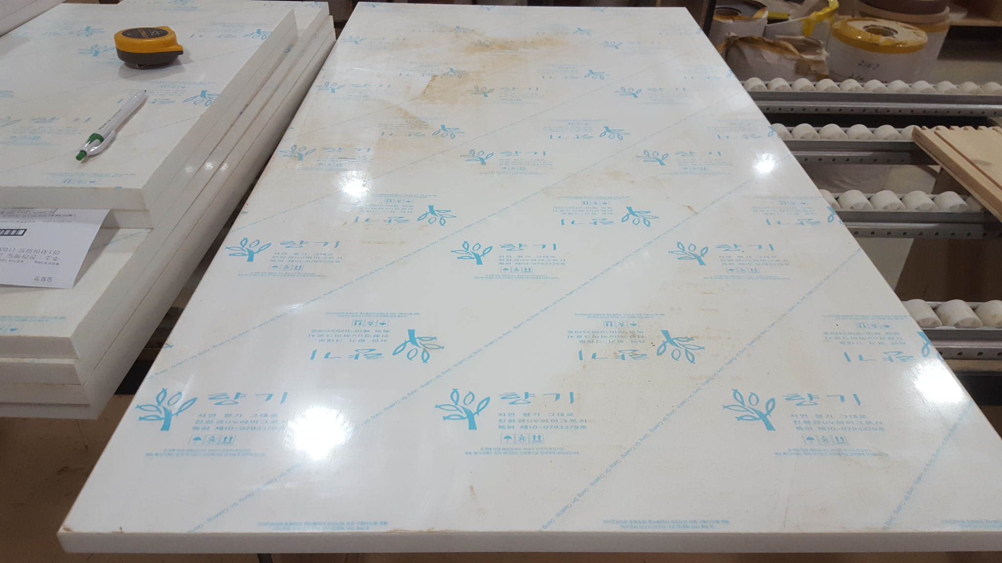 백색 UV 고광택 6면코팅 18mm(MDF,국내산) W2400XH1209mm 11,600원